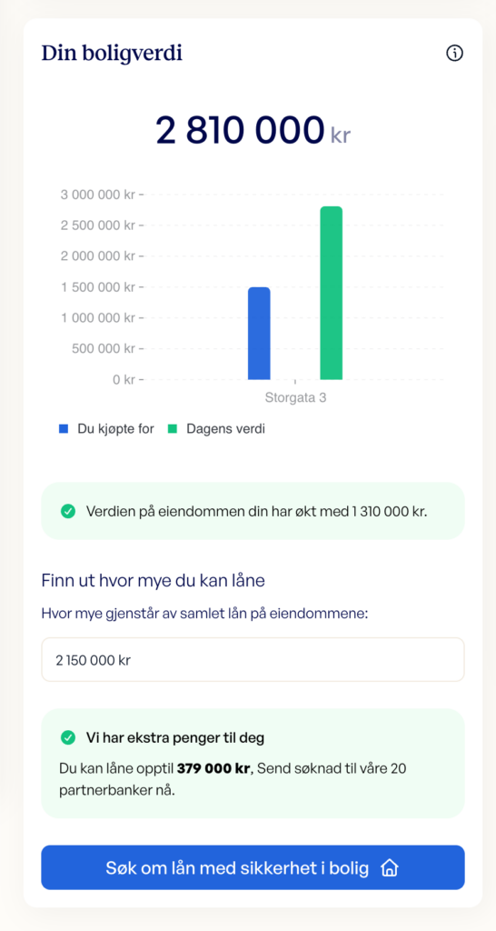Da kan vi estimere hvor mye ledig sikkerhet du kan ha i boligen din – og om du kan ha mulighet til å søke lån med sikkerhet.