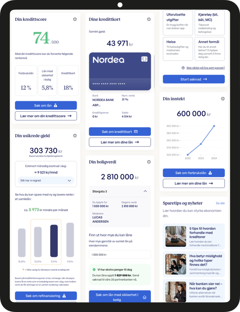 Du kan se registrert usikret gjeld samlet på ett sted. Målet er å gi deg bedre oversikt over økonomien din, slik at du lettere kan forstå situasjonen din. Det er helt uforpliktende å bare logge inn og se.